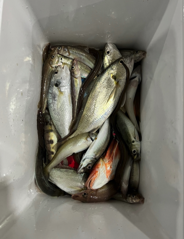 대상어는 백조기였는데 모래무지랑 장어, 전갱이, 성대.... 이상한 애들이 많이 잡혔다. 엄마가 집에 가져오지 말라해서(이걸 안 가져가???) 할머니집에 갖다 주고 왔다.