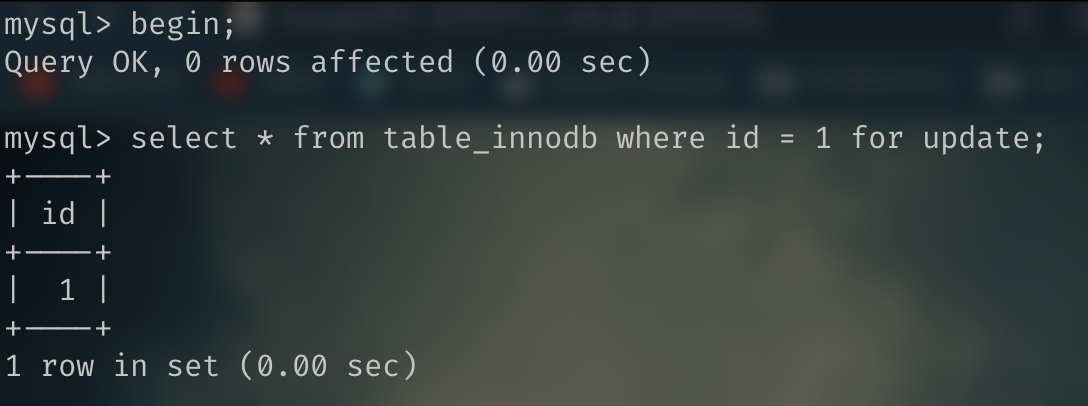 SELECT id FROM tb_1 WHERE id = 1 FOR UPDATE;