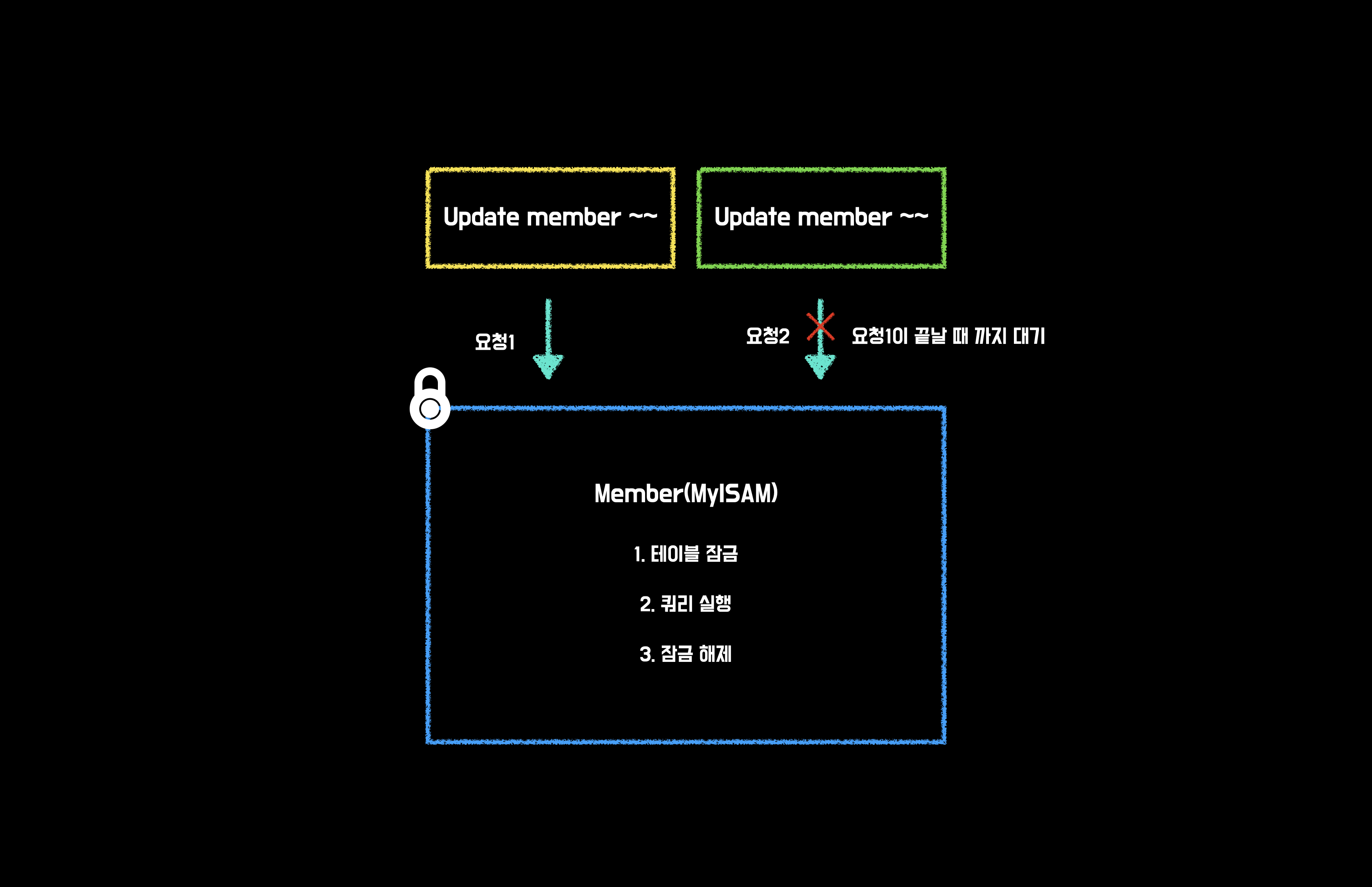 - 다른 세션에서 동시에 같은 테이블에 대한 읽기 락, 쓰기 락 모두 획득이 불가능