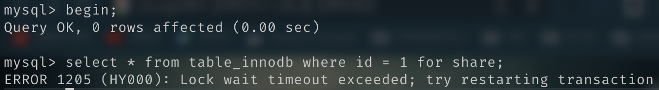 SELECT * FROM TABLE_INNODB WHERE id=1 FOR SHARE;
