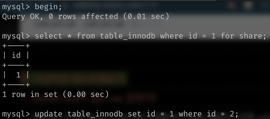 SELECT id FROM tb_1 WHERE id = 1 FOR SHARE;