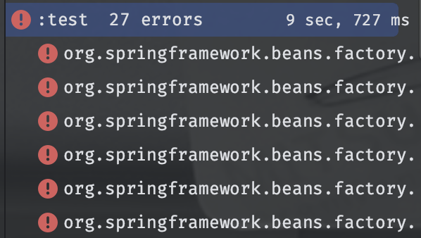 이메일 발송 기능을 만들던 중 빌드를 돌렸더니 에러가 터졌다. 분명 WAS를 구동할 때는 잘 돌아갔는데 왜 다른 테스트들이 터지는지 의문이었다.