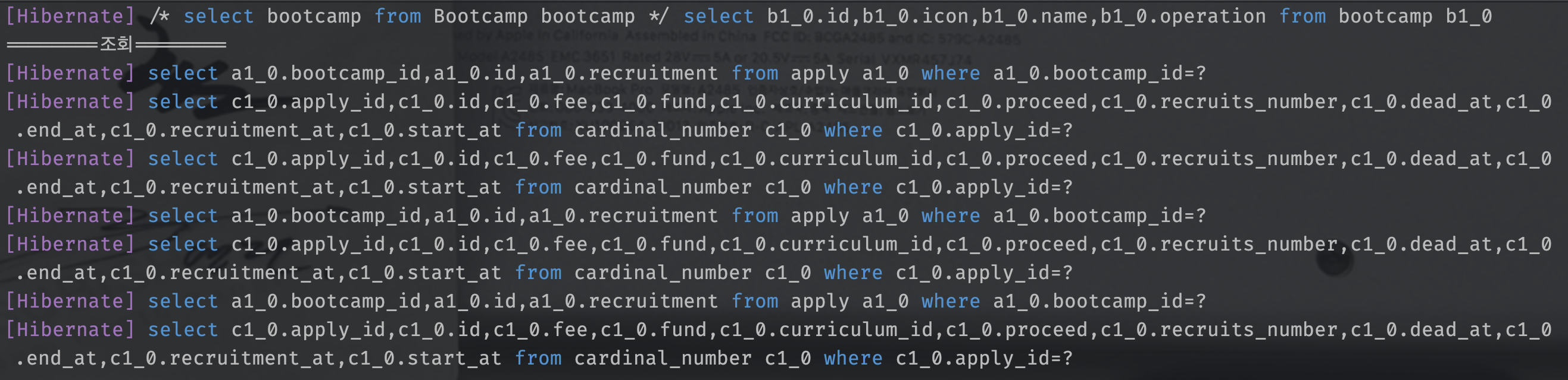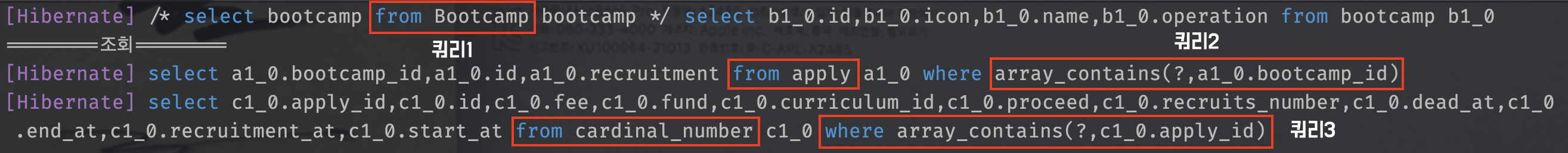 - 쿼리 1: select bootcamp from Bootcamp bootcamp where bootcamp.id = :bootcampId
