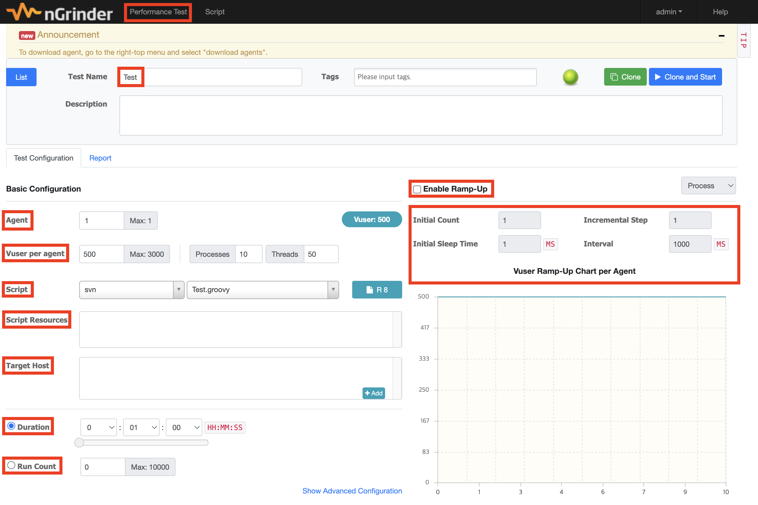 - Vuser per agent : 실질적으로 부하를 발생시키는 주체로 프로세스와 스레드 수를 조정하여 vUser(가상 사용자)를 생성한다.