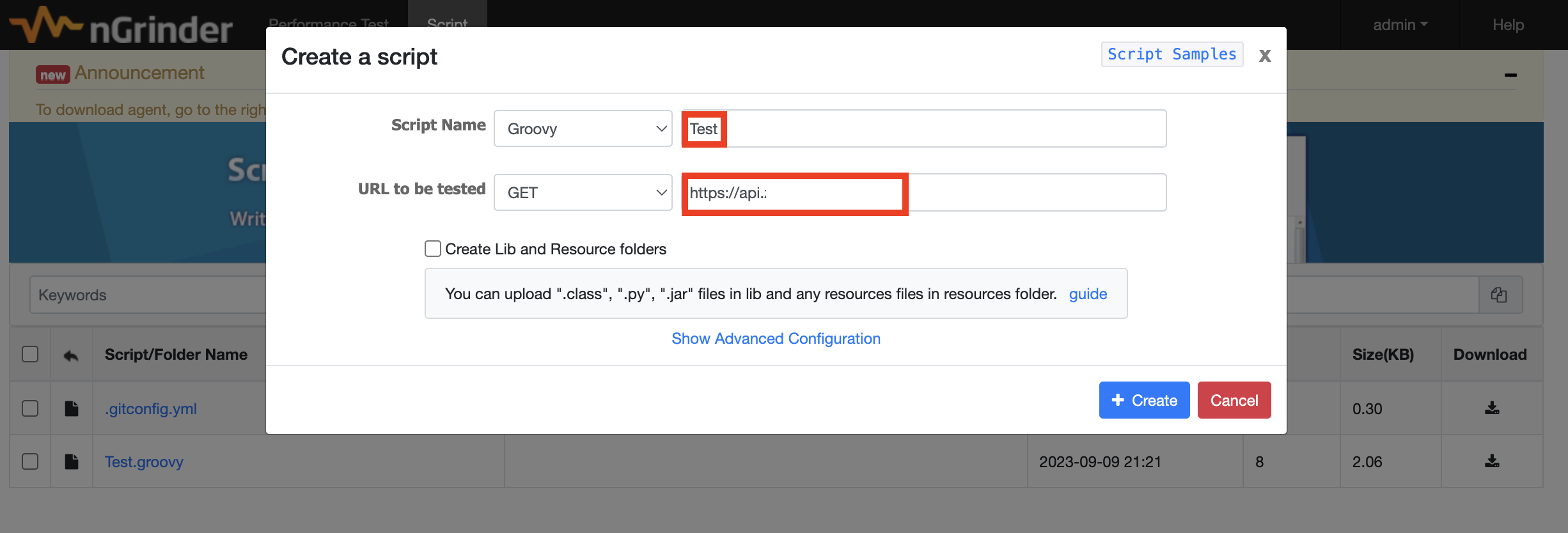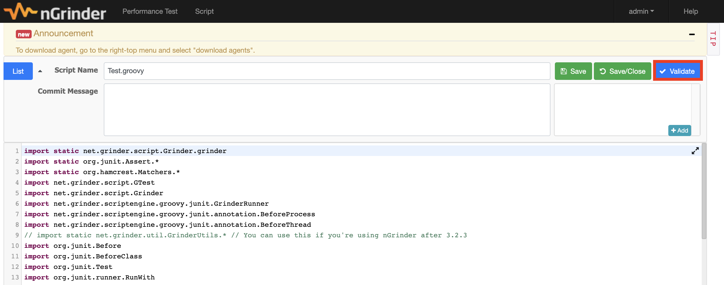 이렇게 요청할 url을 작성해 주면 nGrinder가 해당 Url에 요청하기 위한 기본적인 부하 스크립트를 작성해 준다. 다만, 로그인이 필요한 작업이거나 별도의 전처리가 필요할 경우 해당 부하 스크립트를 수정해 주자.