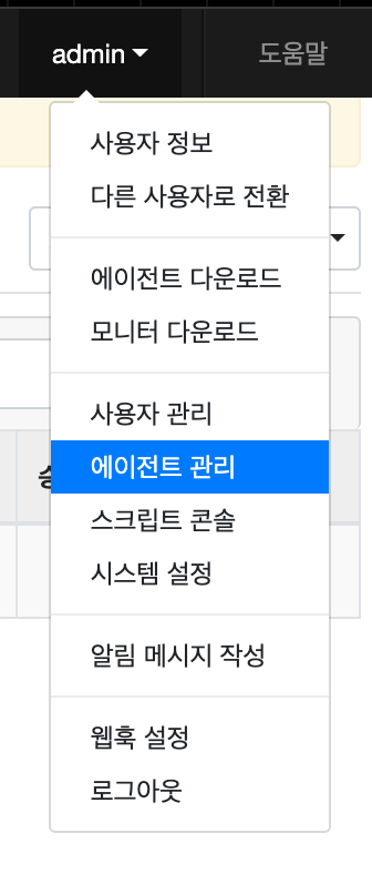 초기 아이디/비밀번호는 admin/admin이다. 로그인 후 agent를 다운로드한다.