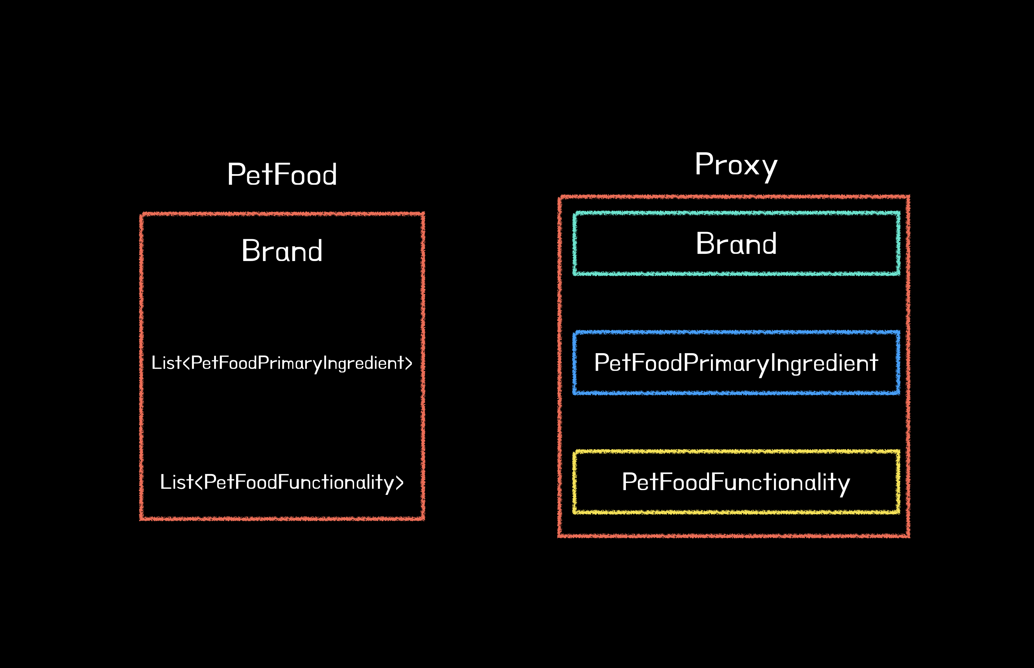예를 들어 PetFood와 Brand, PetFoodPrimaryIngredient, PetFoodFunctionality가 모두 지연로딩으로 설정되어 있을 때 해당 PetFood 인스턴스의 연관관계를 직접 호출할 때(Ex. getBrand())가 돼서야 진짜 객체를 만든다는 뜻이죠.