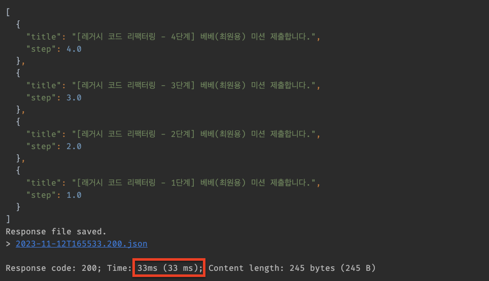 마지막으로 조회 메서드에 Repository를 사용하는 대신 redisTemplate을 사용하여 조회해 주면 됩니다. 기존 Querydsl을 사용하고 있었는데, 2번의 조인과 정렬 기준을 찾는 등 번거로움이 사라졌습니다.