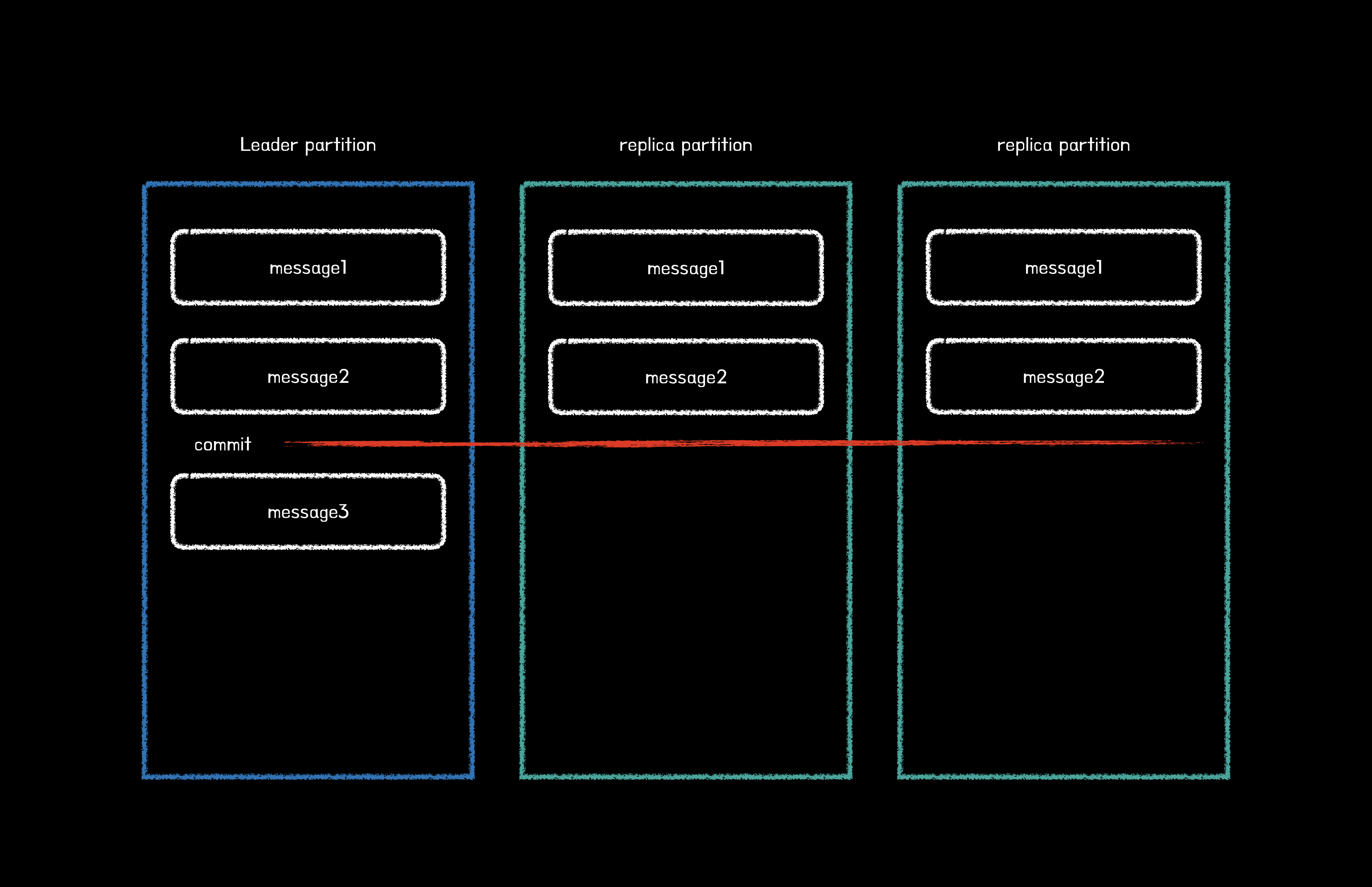 ISR 내의 팔로워들은 리더와의 데이터 일치를 유지하기 위해 지속적으로 리더의 데이터를 따라가게 되고, 리더는 ISR 내 모든 팔로워가 메시지를 받을 때까지 기다린다.